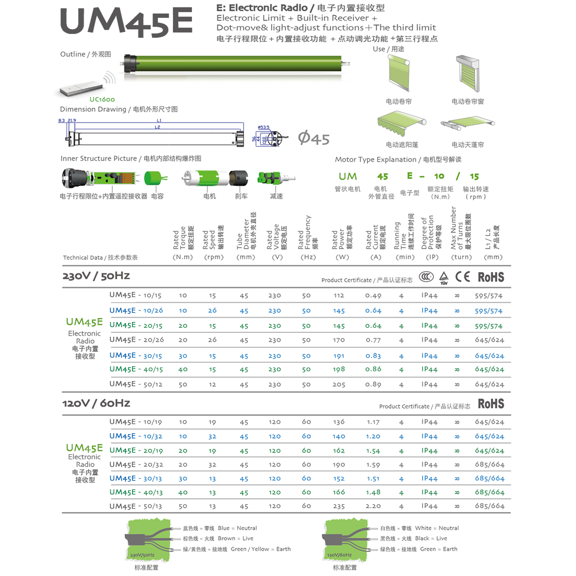 E:Electronic Radio/電子內置接收型 電子行程限位+內置接收器+點動調光功能+第三行程點